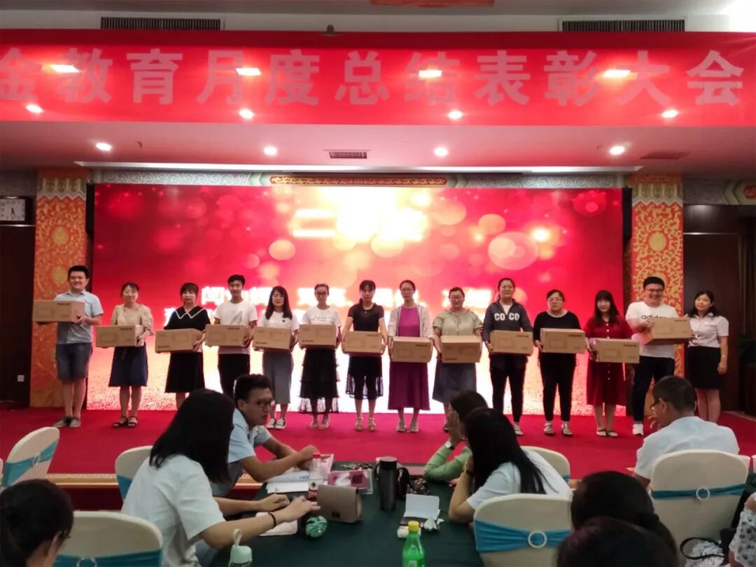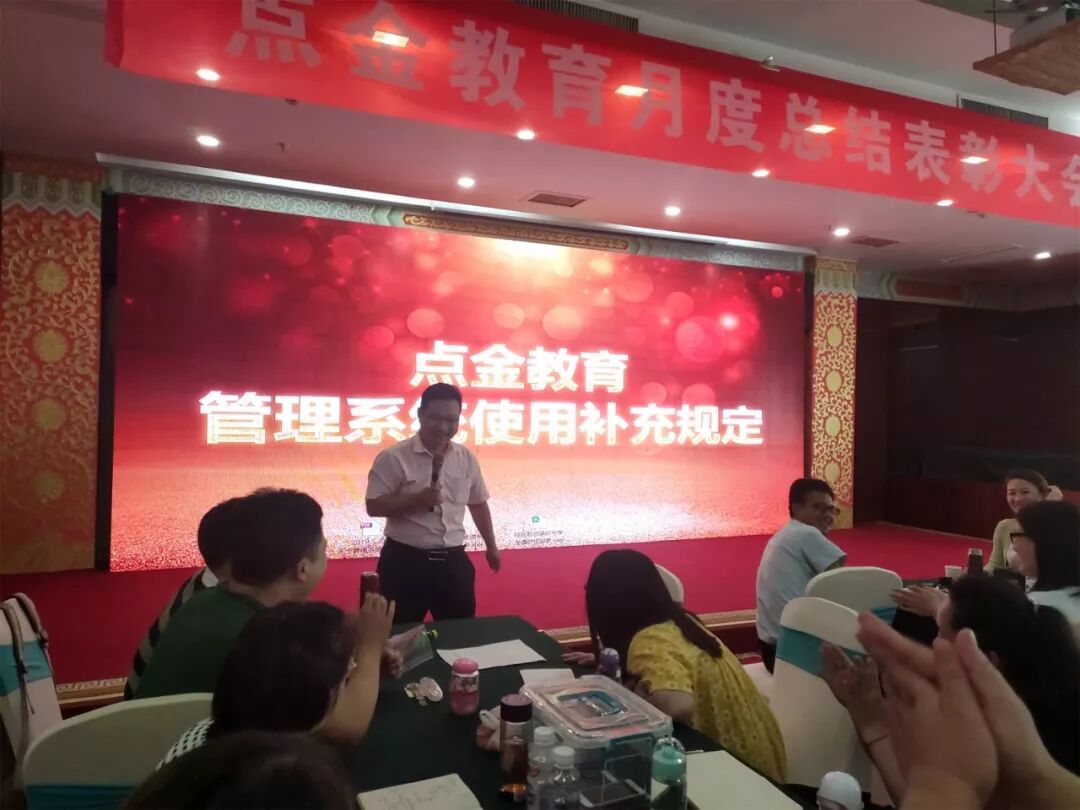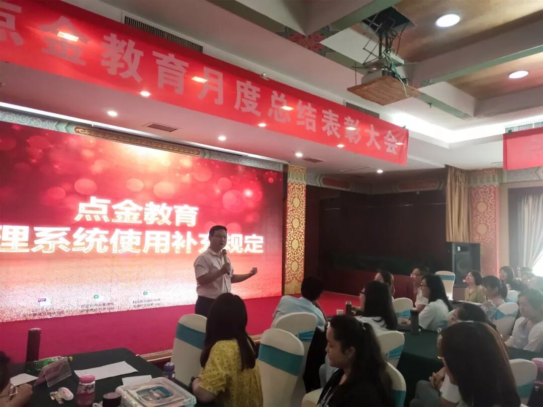 为弘扬先进之风采,凝聚发展正能量,进一步调动老师们奋发向上的积极性,推动校区学风建设。2019年6月30日,点金教育三月份、四月份、五月份月度总结表彰大会于泰安市铭座三泰宾馆二楼大学堂隆重召开。深圳市点金教育科技集团有限公司董事长张敬新,集团公司、子公司中高层领导,点金教育各加盟校校长及170余名职工参加了本次会议。